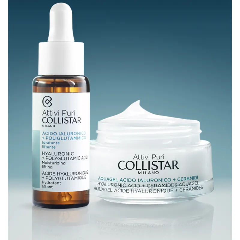 Collistar Attivi Puri Aquagel Ácido Hialurónico + Ceramidas. Tratamiento en crema-gel con 4 pesos moleculares de Ácido hialurónico que aportan una hidratación intensa a varios niveles.