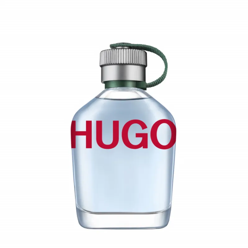 HUGO Man se presenta en un elegante frasco, modernizado con un nuevo logotipo de gran tamaño.