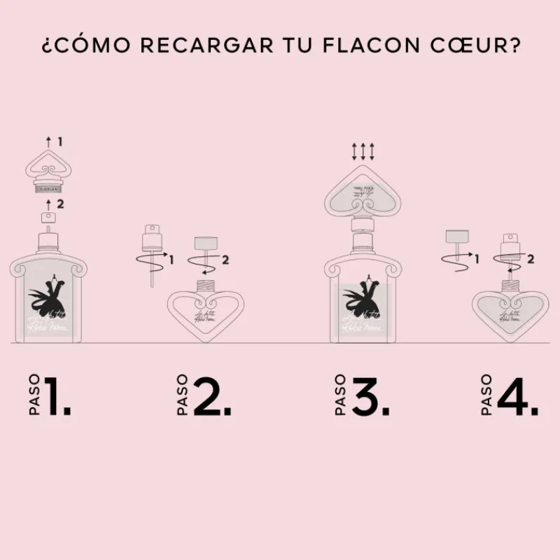 La icónica fragancia de Guerlain, Eau de Parfum La Petite Robe Noire, se ha inspirado en un nuevo formato nómada y recargable: el Frasco de Corazón.