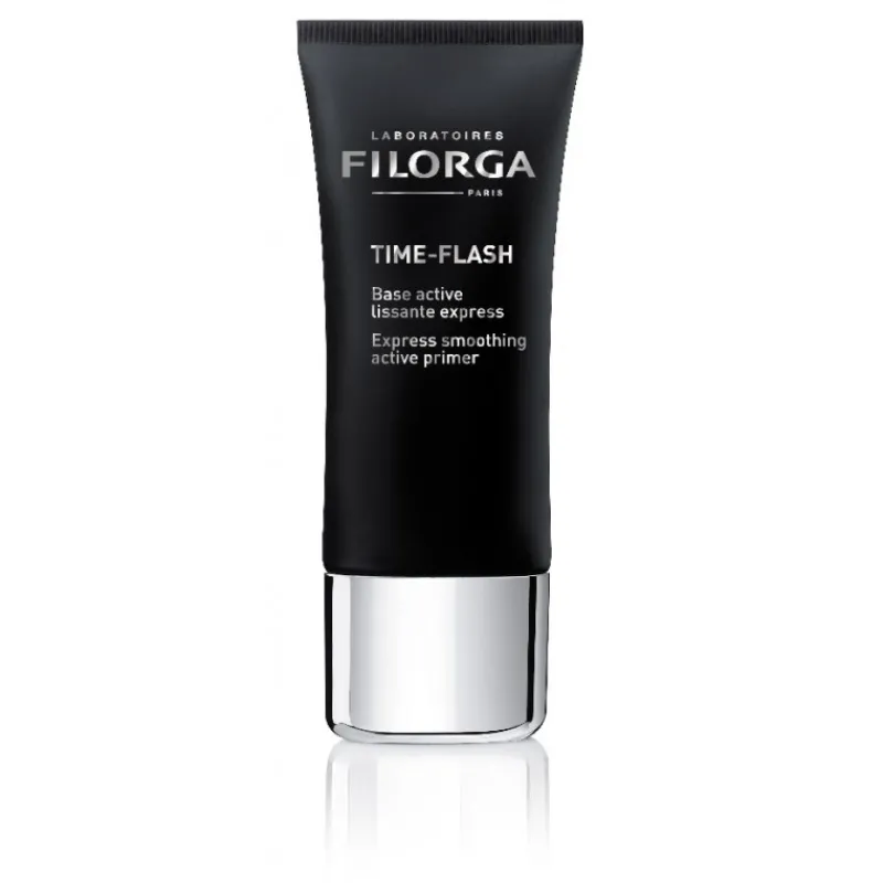 Filorga Time-Flash Base Active, ideal base Activa Alisadora Exprés para todo tipo de pieles y de arrugas. Con su textura fundente con micro-polvos difuminadores, es ideal para el grano de piel irregular y los poros dilatados.