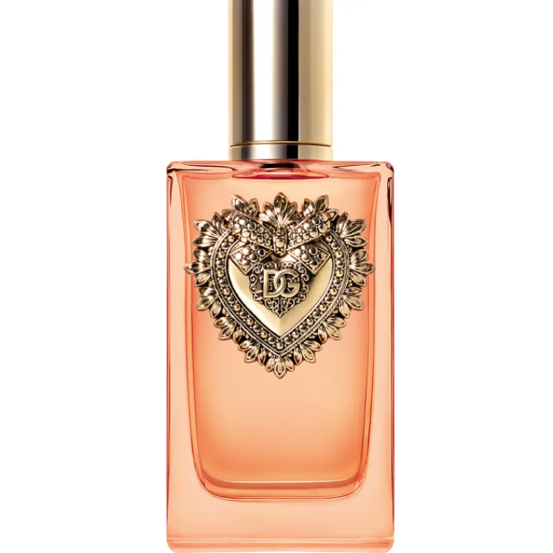 Dolce&Gabbana Devotion Eau de Parfum Intense se encuentra dentro de una vibrante botella de vidrio tintado en ámbar, y adornada con el inconfundible y simbólico Sagrado Corazón.