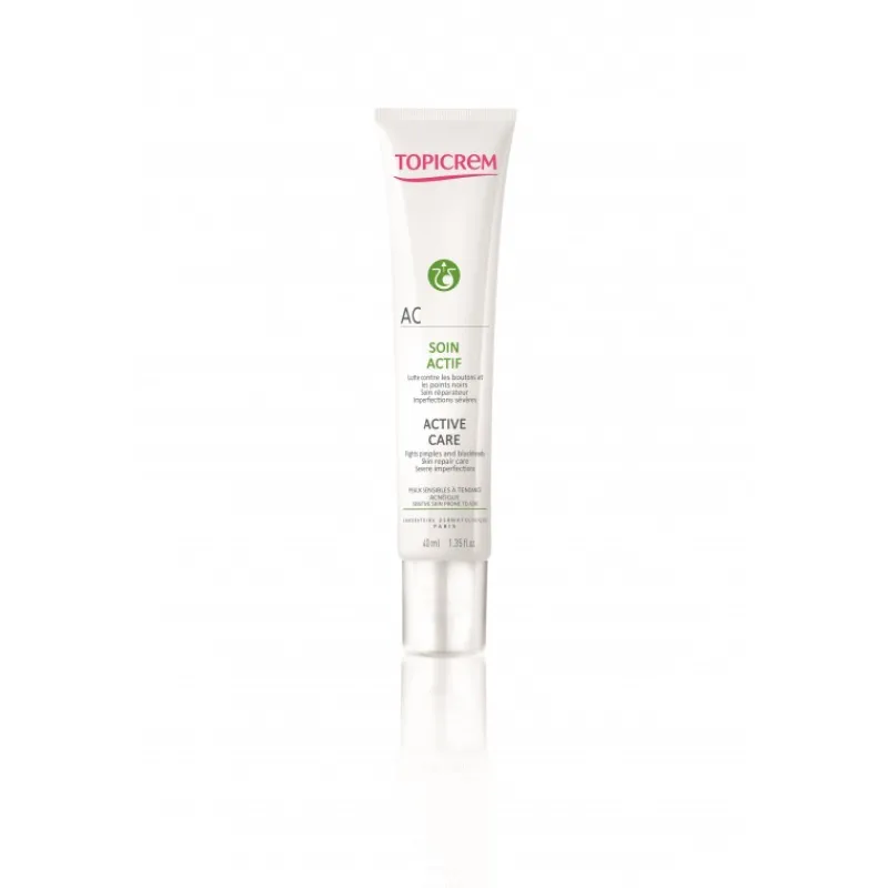 Topicrem AC Cuidado Activo 40 ml ha sido especialmente concebido para combatir los puntos negros y las espinillas de las pieles con tendencia acneica de adultos y adolescentes.
