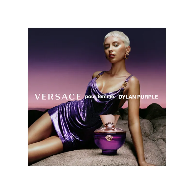 Versace Dylan Purple es una explosión de color teñida de púrpura cuando llega la majestuosa fresia morada.