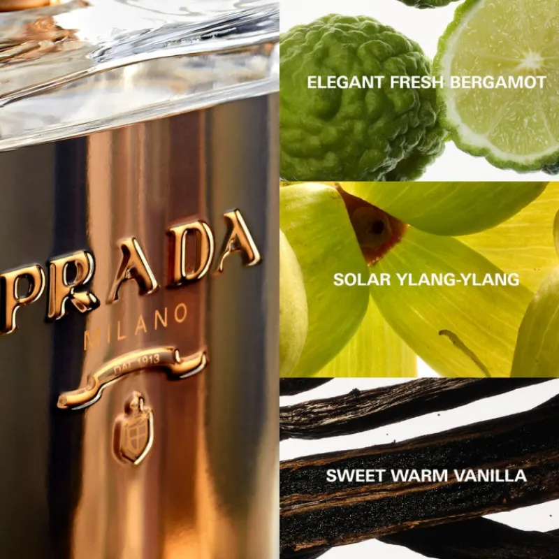 La Femme Eau de Parfum 35 ml.Como una quimera olfativa, La Femme Prada es una llamada a la emoción. Desviándose de las senderos habituales de la perfumería, su estela de flor de alhelí evoca una evasión sensorial. Esta nota solar, floral e hipersensual, rememora el frescor del rocío sobre une flor exótica. La nota se entremezcla con ylang-ylang, cuyos toques especiados se suavizan con cera de abeja, vainilla y nardo. La destilación de vetiver culmina la fragancia, completando y redondeando su esencia.