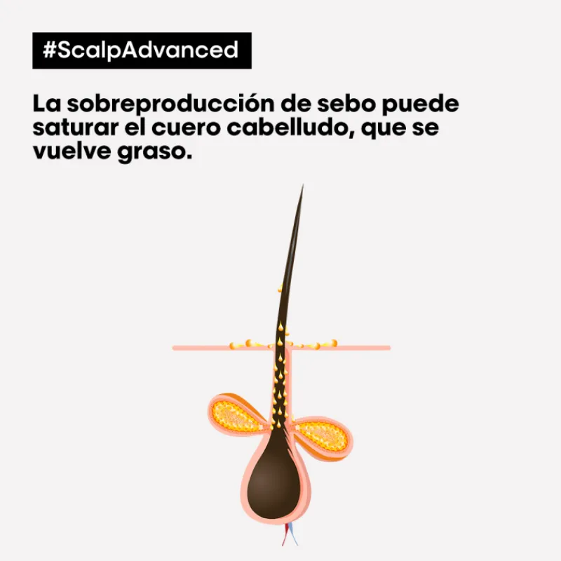 Después de 1 sola utilización, el cuero cabelludo queda con un 78% menos de sebo*. *test instrumental.