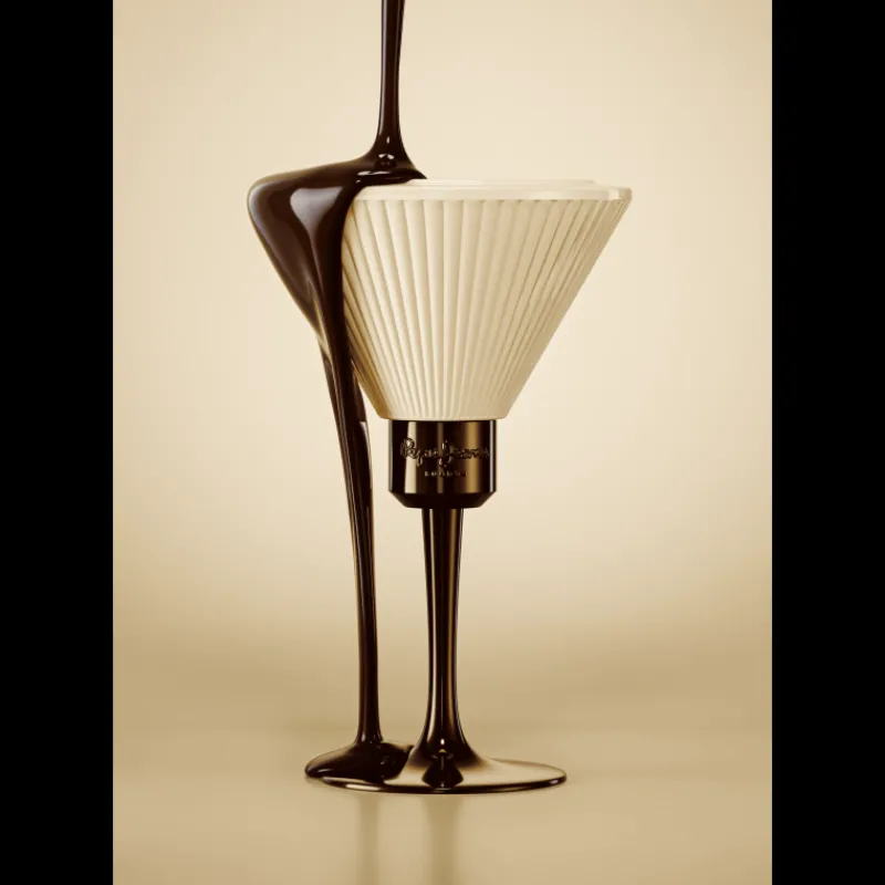 A medida que se asienta, la fragancia revela su faceta más adictiva: un fondo envolvente de madera de ámbar, cacao y sándalo que deja una estela cálida y reconfortant.