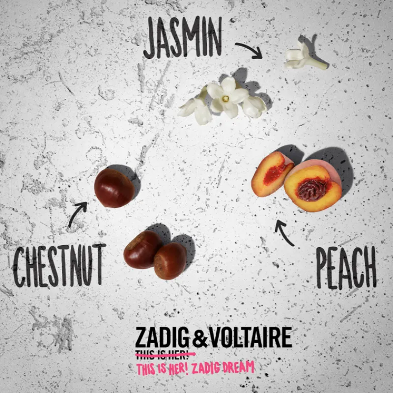 Perfume This Is Her Zading Dream Eau de Parfum de Zadig&Voltaire. Una declaración olfativa atemporal con notas frutales se unen a una mezcla floral inédita y delicada en esta embriagadora inyección de energía.
