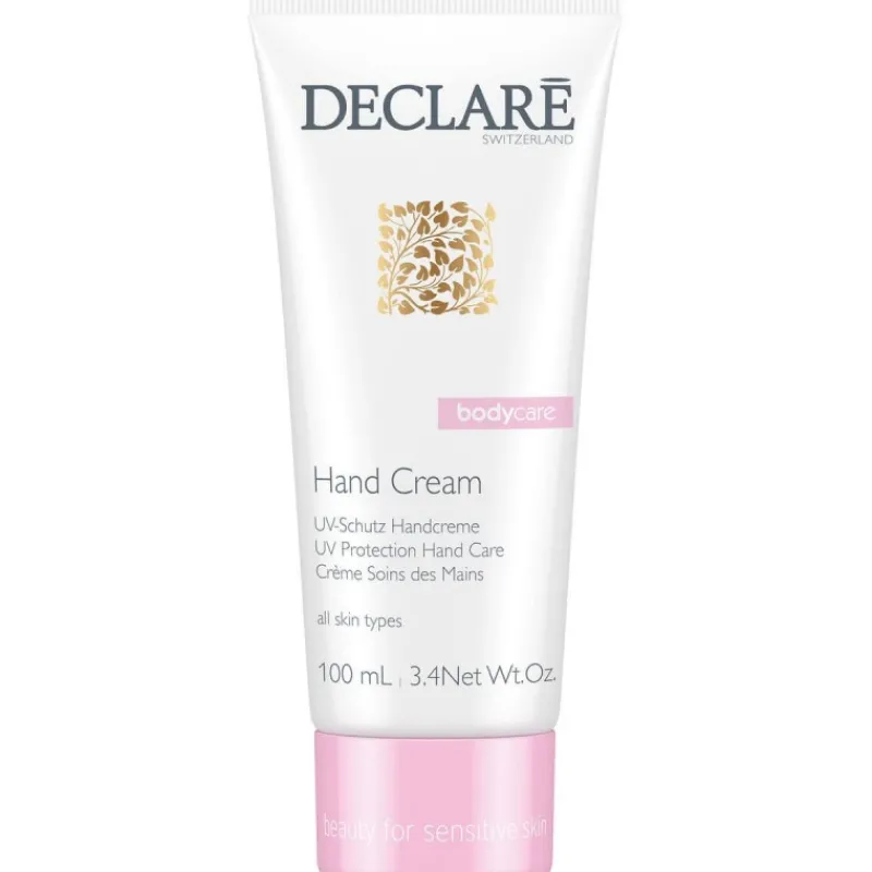 Declaré Bodycare Hand Cream, previene el fotoenvejecimiento. Con filtros UVA/UVB, ayuda a prevenir la pigmentación de la piel inducida por la luz y protege contra las influencias ambientales irritantes. Además, la fórmula de Declaré, ideal para pieles sensibles, reduce el envejecimiento progresivo de la piel y, al mismo tiempo, la mantiene hidratada todo el día. Testado dermatológicamente.