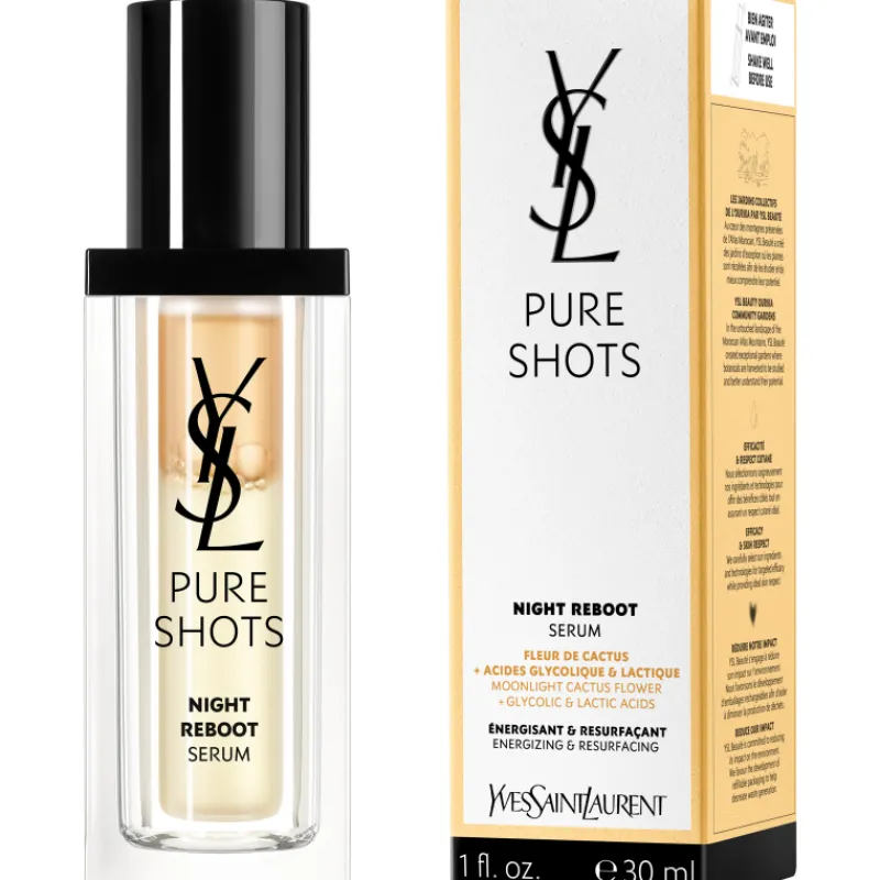 Con el Sérum Nocturno PURE SHOTS NIGHT REBOOT de Yves Saint Laurent, despierta cada día con una piel rejuvenecida y radiante.