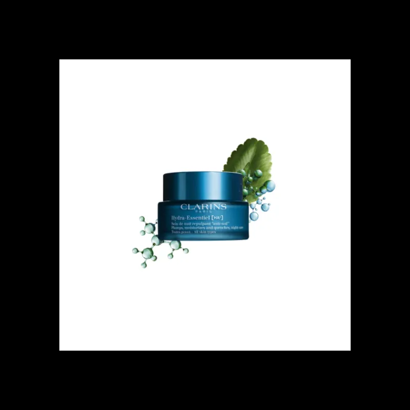 Clarins Hydra Essentiel [ha²] Crema De Noche. Un tratamiento nocturno hidratante y redensificante, con una textura ligera y envolvente que reconforta la piel sedienta.