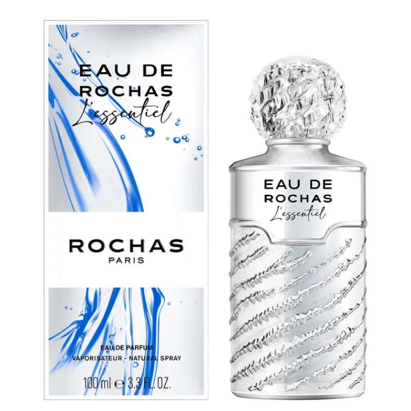 Rochas L’Essentiel eau de parfum 100 ml. En un atardecer mediterráneo, cuando el mar adquiere su tono plateado y el tiempo se ha enfriado, Eau de Rochas L’essentiel despliega su estela Mineral Floral Cítrica.