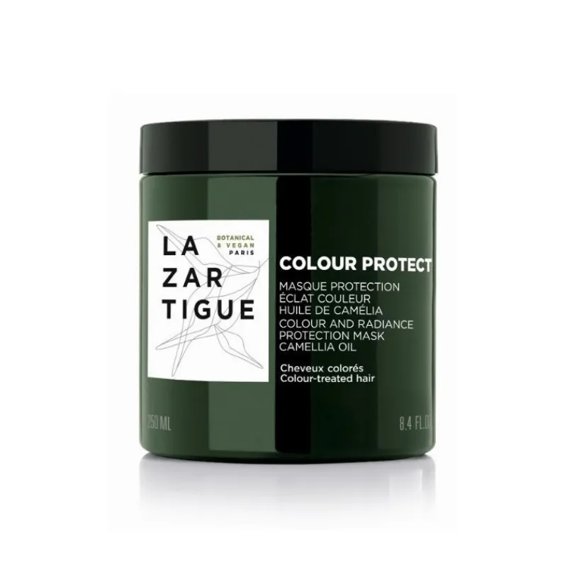 La mascarilla vegana Colour Protect contiene 92% de ingredientes naturales que incluyen aceite de camelia para nutrir profundamente el cabello teñido. Su pH ácido fija su color y potencia su brillo.