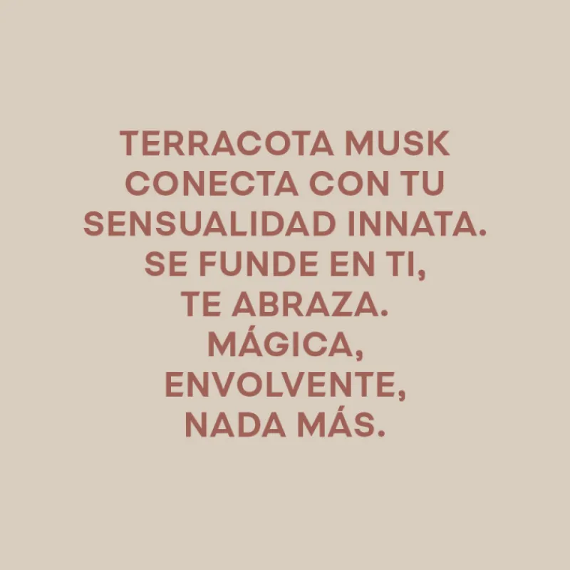 Adolfo Dominguez Terracota Musk Eau de Parfum. Una fragancia mágica y envolvente cuyos ingredientes naturales se abrazan a tu piel