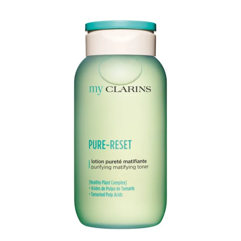 My Clarins Pure-Reset Purifying Matifying Lotion. Tónico purificante y matificante de Clarins que refresca y equilibra la piel, afina su textura y contrarresta los brillos, para una piel limpia y clara.
