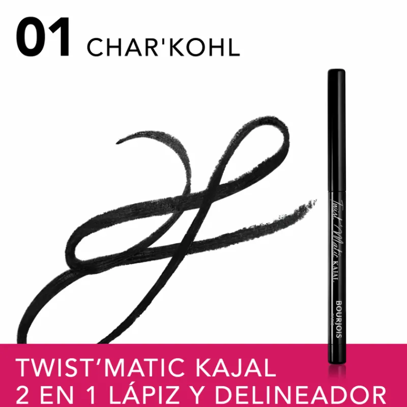 Twist’matic Kajal, el lápiz automático 2 en 1: delineador y lápiz con sacapuntas integrado que se adapta al contorno del ojo y a su interior para un delineado más preciso y sin manchas.