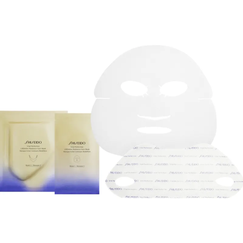 Mascarilla facial que tensa, reafirma e ilumina inmediatamente la piel del rostro y la línea de la mandíbula. Redefine el óvalo facial. Consta de 2 partes: zona del rostro y zona de la mandíbula