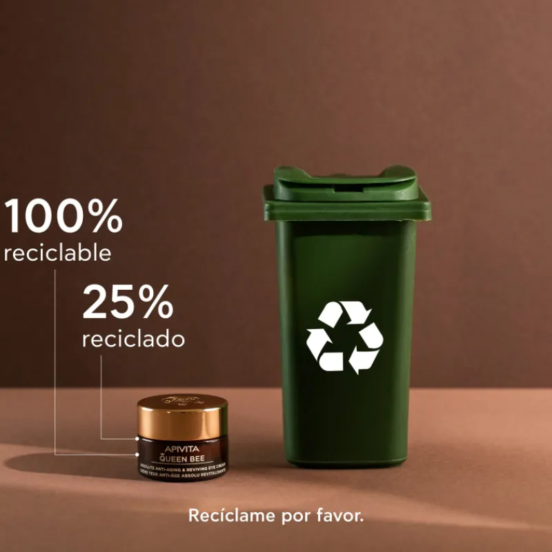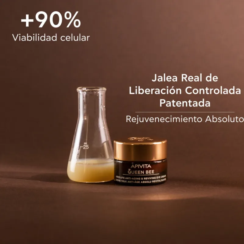Apivita Queen Bee Crema Contorno de Ojos Revitalizante Antiedad. La quintaesencia vital de la colmena fusiona armoniosamente las propiedades rejuvenecedoras de la jalea real con los efectos regeneradores y protectores del propóleo y la miel, para conseguir la gama suprema QUEEN BEE.