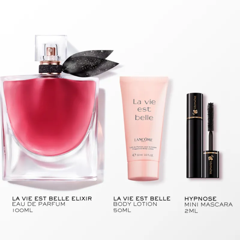 Este cofre de regalo incluye tus productos de belleza favoritos: LA VIE EST BELLE ELIXIR EAU DE PARFUM 100ML – HYPNÔSE MINI MASCARA 2ML – LA VIE EST BELLE BODY LOTION 50ML.