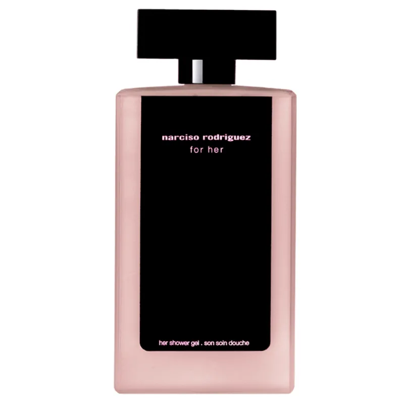 Narciso Rodriguez For Her Gel 200 ml. Un gel de ducha translúcido rosado que limpia la piel suavemente para un puro momento de placer.
