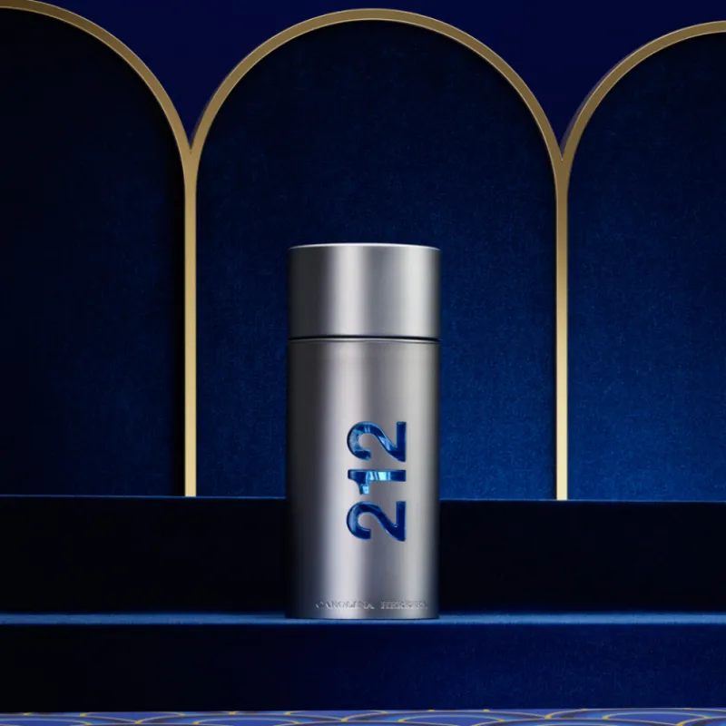 El frasco de 212 NYC tiene un diseño elegante y metálico, inspirado en la arquitectura icónica de Manhattan. Es cilíndrico y cuenta con un cierre magnético discreto, lo que le da un toque distintivo y sofisticado.窶>
