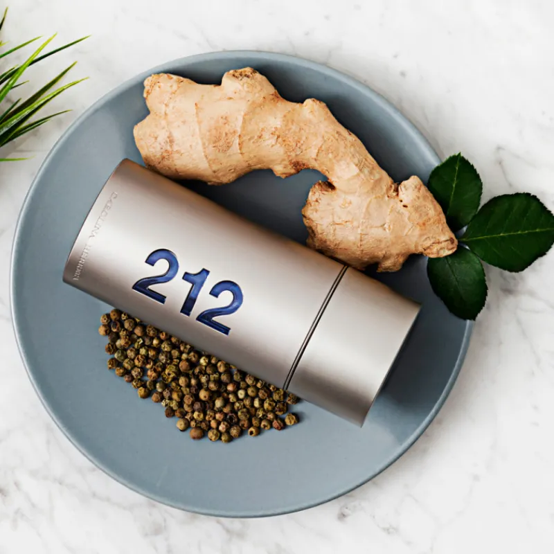 El perfume 212 NYC Men combina notas frescas de aromas verdes con notas de corazón de especias sensuales y picantes.