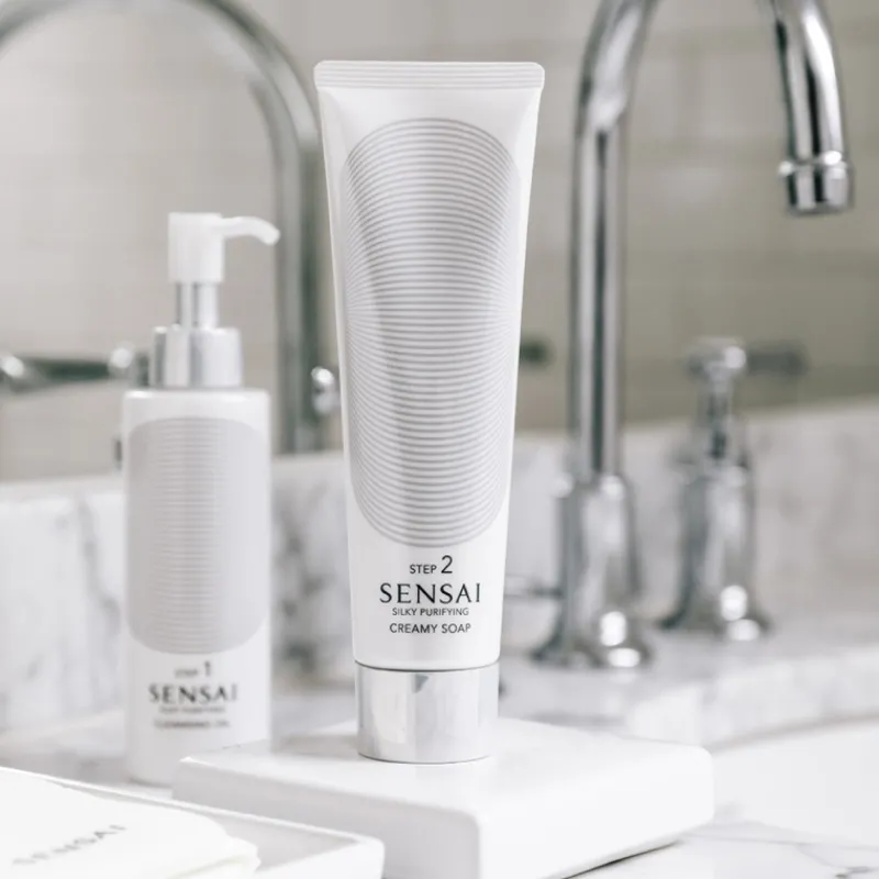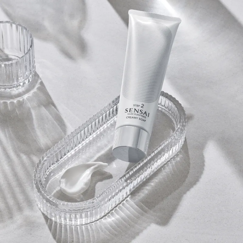 Silky Purifying Creamy Soap es un limpiador facial tipo leche que se transforma en una espuma ligera y sedosa.