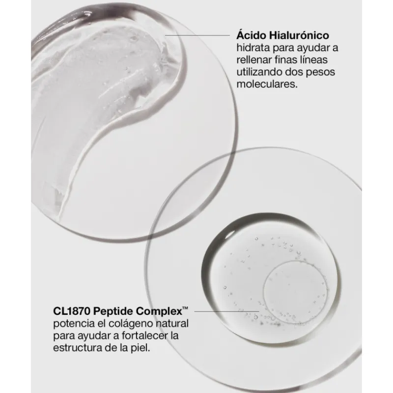 Su innovadora fórmula con CL1870 Peptide Complex邃ágeno natural de la piel para ayudar a reforzar la estructura dérmica, y que sientas la piel más fuerte y lisa.
