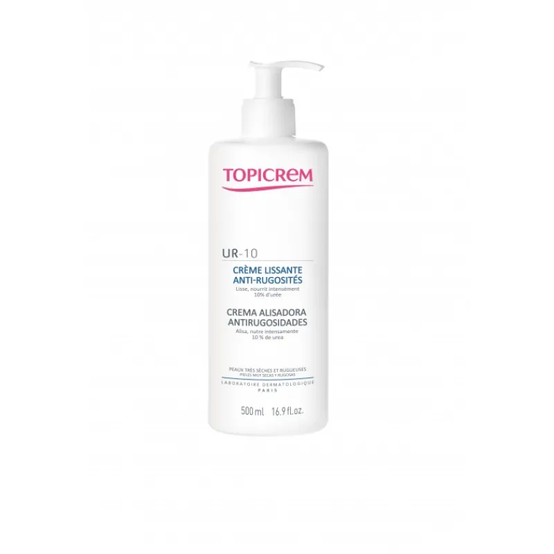 Topicrem UR-10 Crema Alisadora Anti-Rugosidades está formulada para piel áspera y muy seca. Gracias a su concentrado de urea (10%) y de cera de abeja, esta crema es un humectante altamente efectivo que nutre y reconforta las pieles más secas. Día tras día, su piel se ve más elástica, suave y cómoda y desaparece la sensación de piel tirante. Probada bajo control dermatológico.