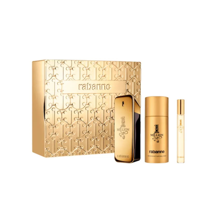 Este set de regalo contiene un 1 Million Eau de Toilette 100 ml, un Desodorante 150 ml y un spray de viaje 10 ml.