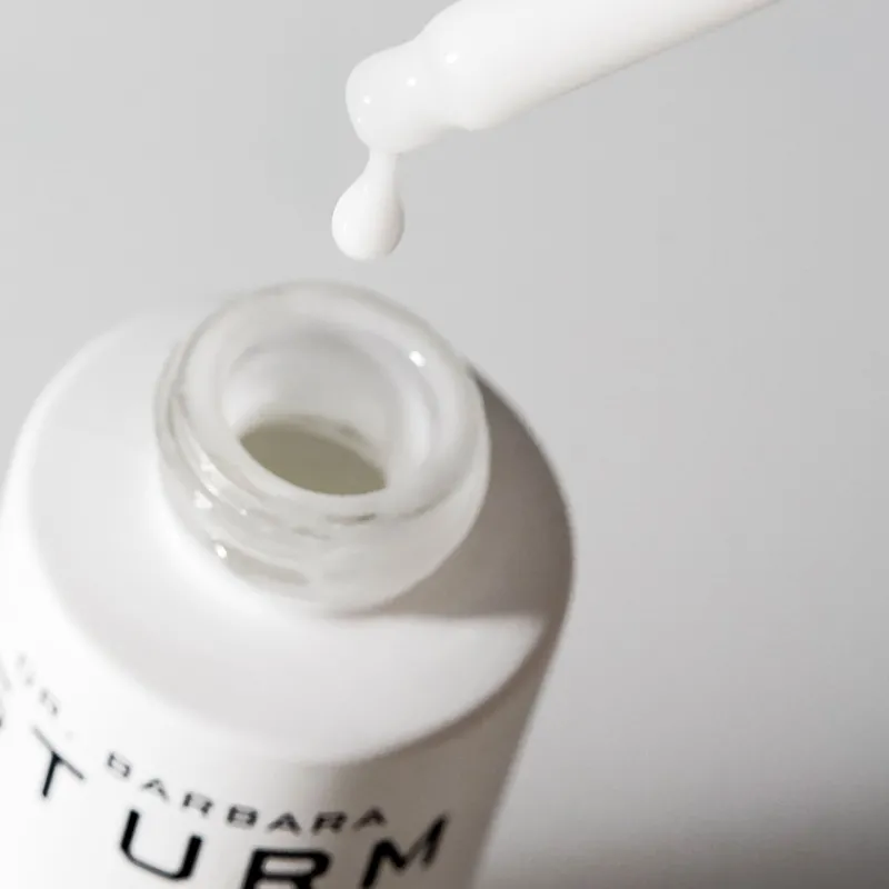 Evita el área de los ojos. Espera aproximadamente un minuto hasta que el sérum se haya absorbido antes de aplicar la FACE CREAM de Dr. Barbara Sturm.
