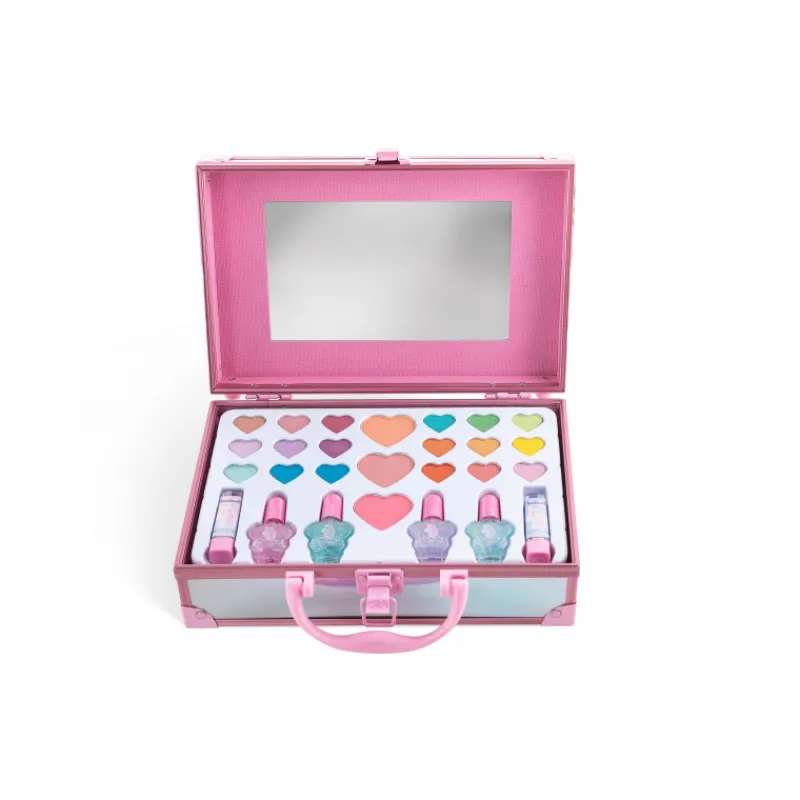 Todos los imprescindibles para que la tarde de juegos sea de lo más creativa y divertida, 18 sombras de ojos de todos los colores del arcoíris, 4 esmaltes de uñas con purpurina, 3 coloretes y 2 pintalabios. ¡Con espejo incluido!